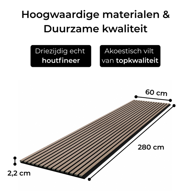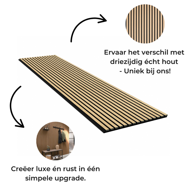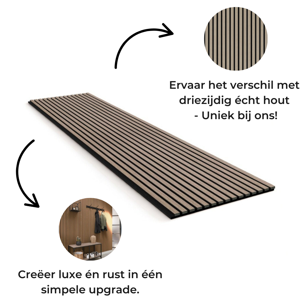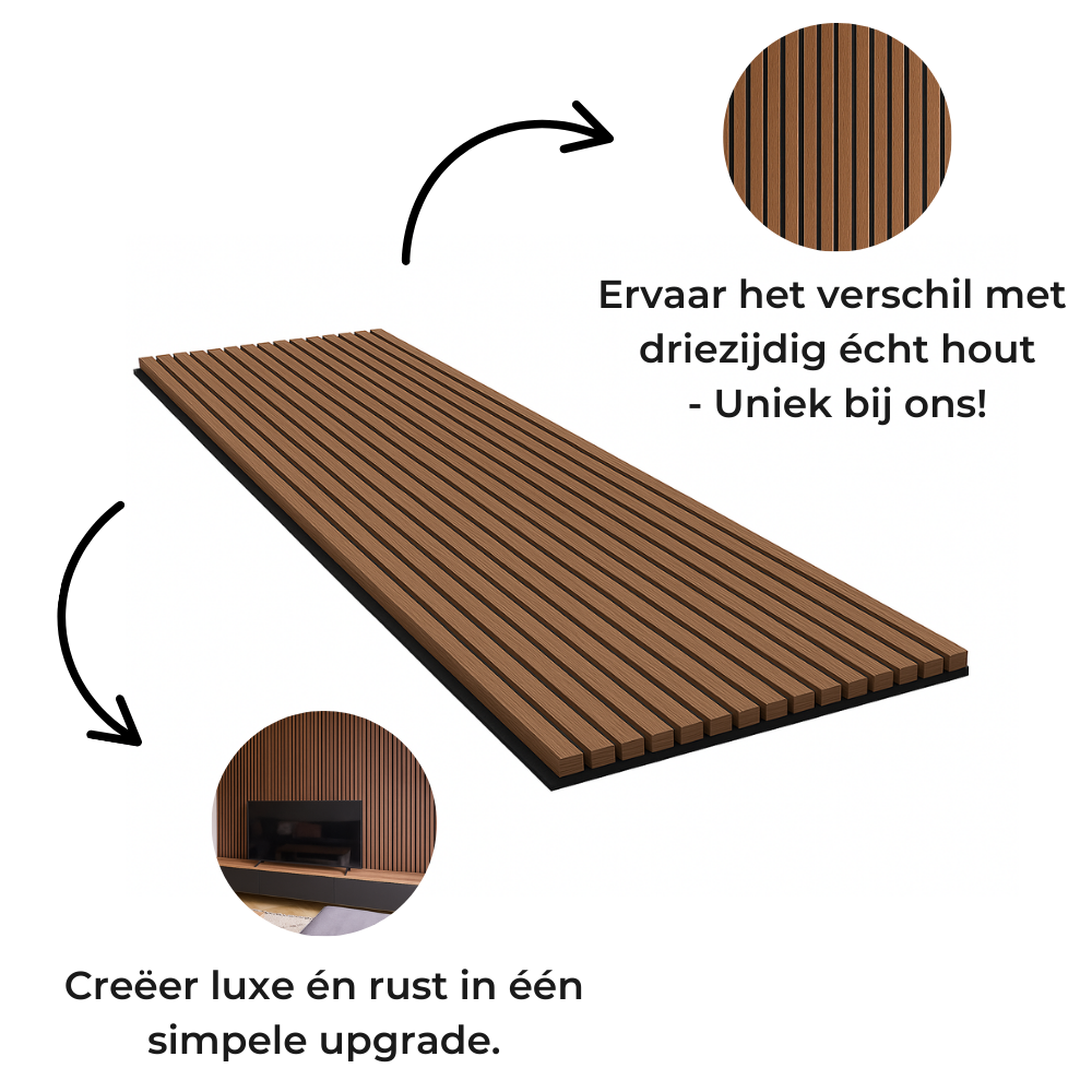 Licht Walnoot Driezijdig - Akoestisch Wandpaneel 280 cm