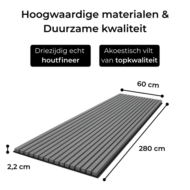 Afmetingen: 280 cm x 60 cm x 2,2 cm (LxBxH)