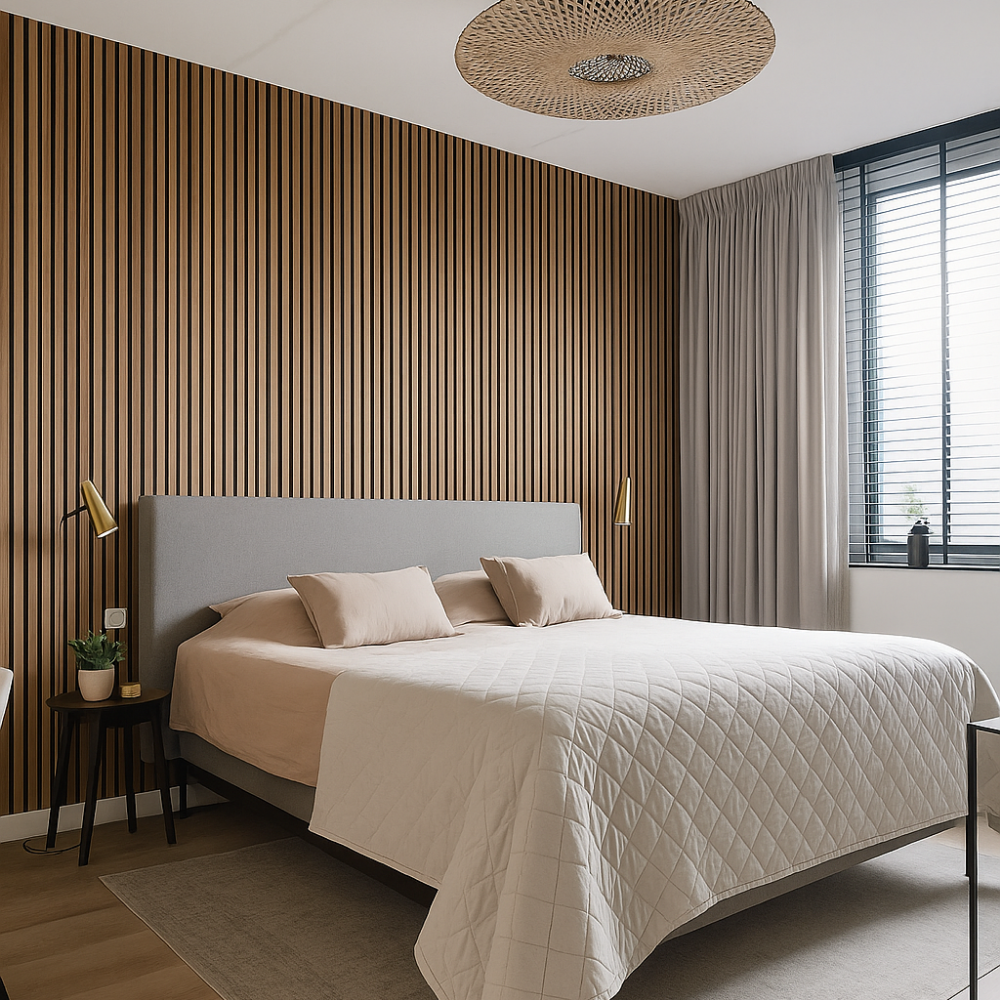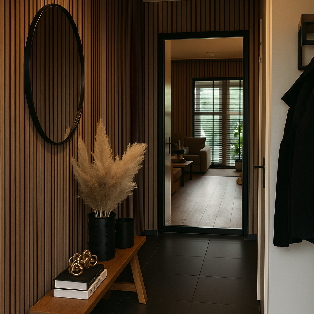Een simpele muur maakt plaats voor karakter en warmte. Onze wandpanelen transformeren elke ruimte tot een stijlvol geheel – in een handomdraai.